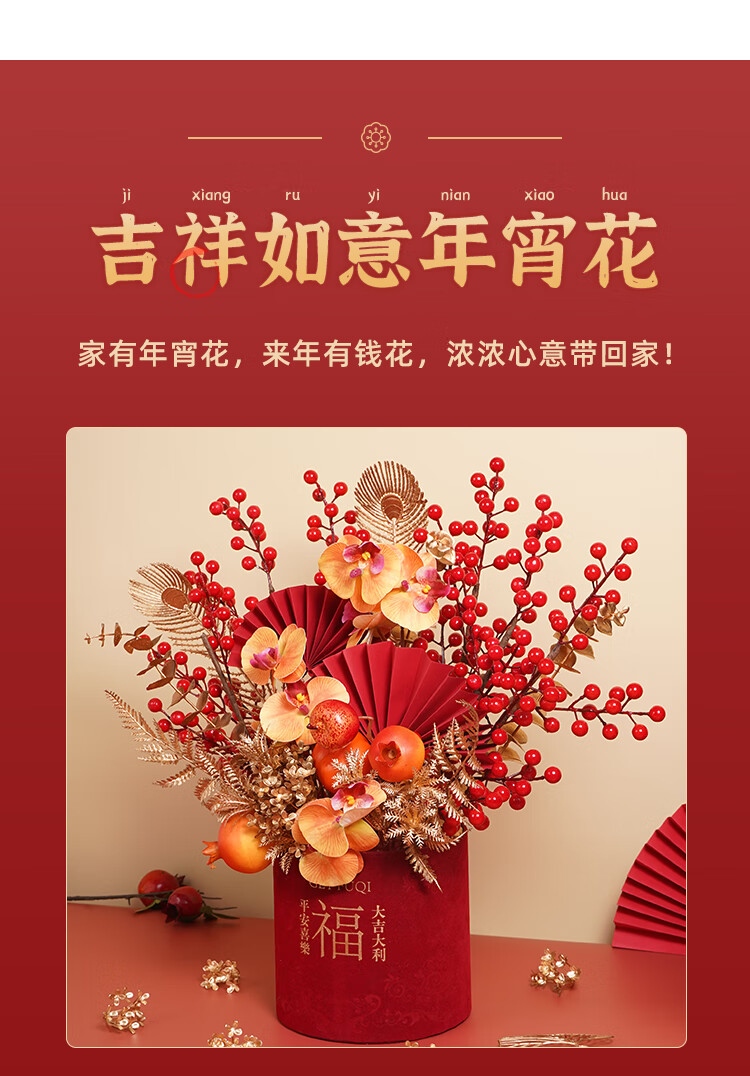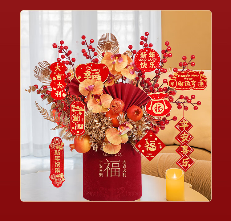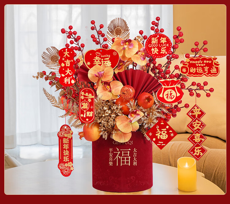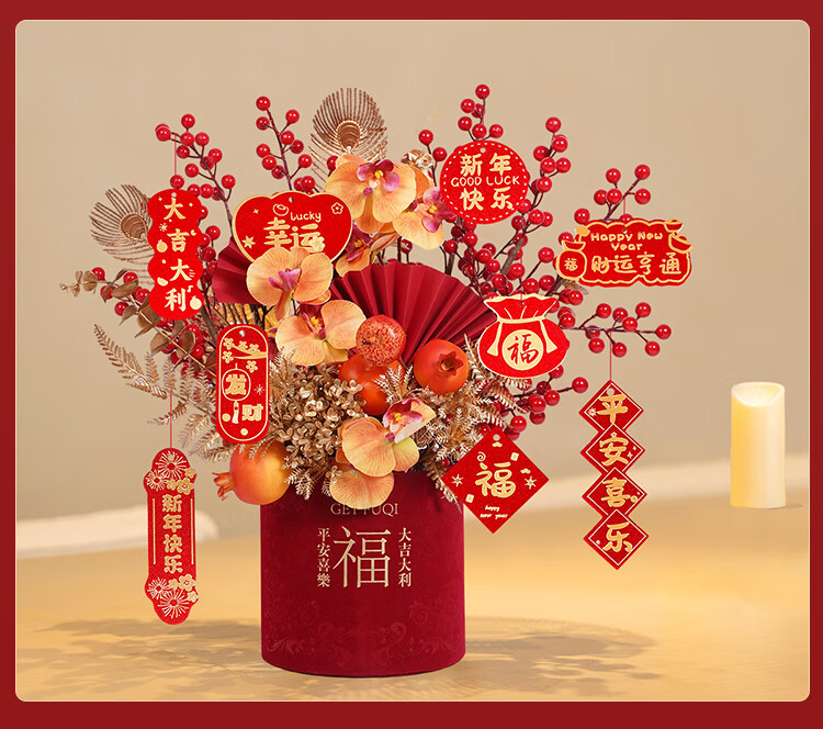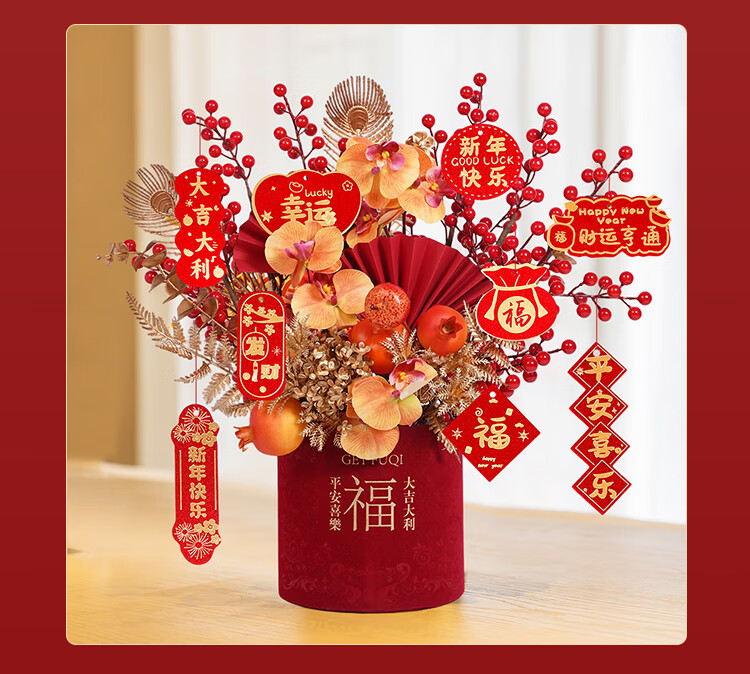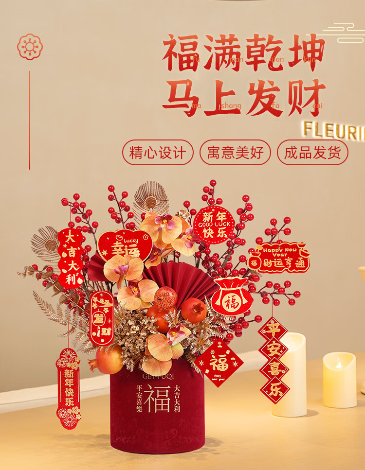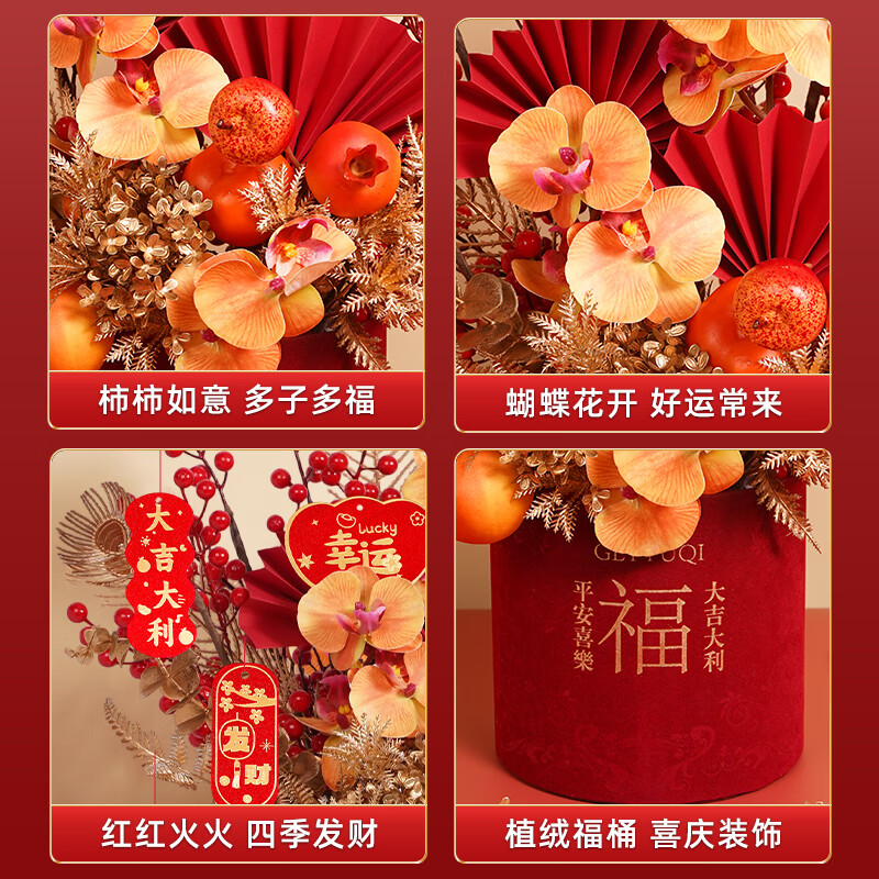 甜蜜点年宵花福桶新年装饰马年元旦过年摆件发财果W3944