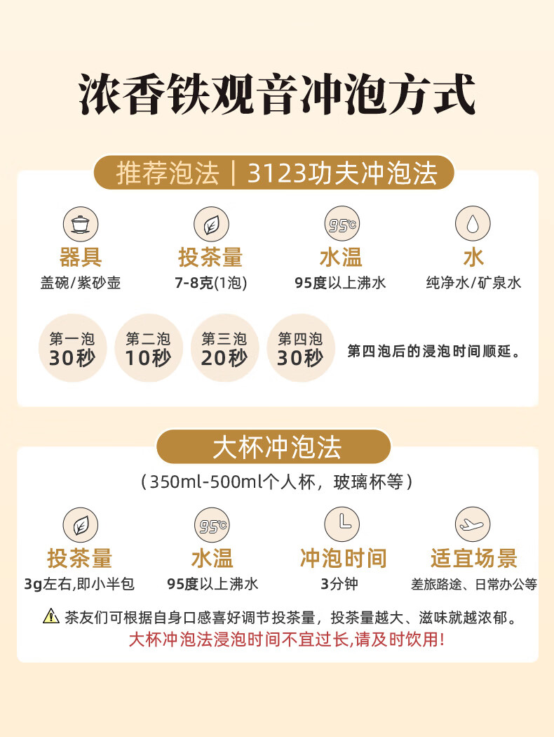 编码:AA2228 净含量:250g 产地:福建泉州 香型:浓香型 配料:安溪铁观音 等级:一级 包装:精美礼盒+独立小泡 编码:AA2228 尺寸:29*21*10cm