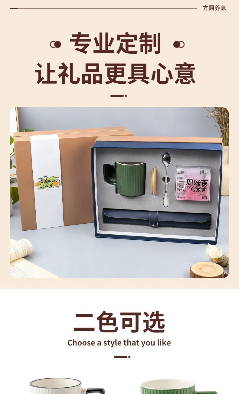方圆养息马克杯桌垫办公套装入职礼盒员工礼物
