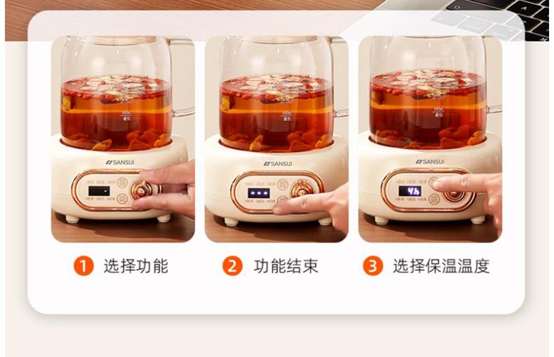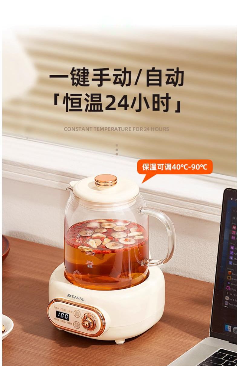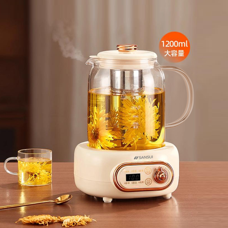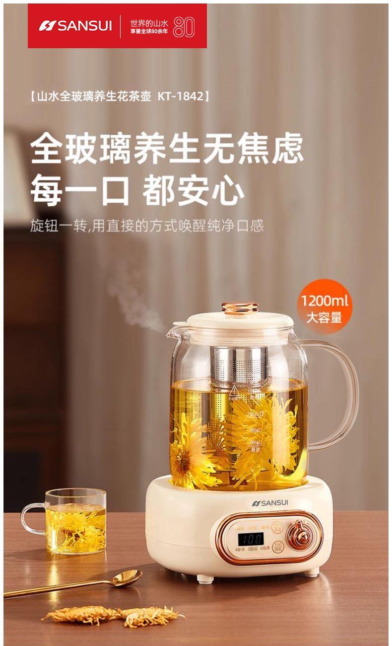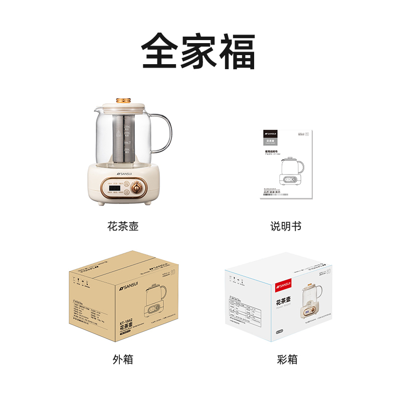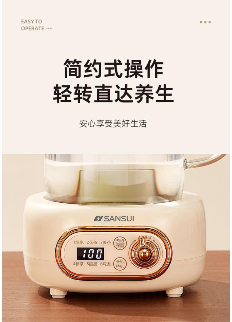 功率:600W 容量:1.2L 全玻璃0涂层0金属0胶水0缝隙 精炖锁鲜柔声煮、6大养生菜单 304不锈钢茶滤 40-90°可调、长效保温 24小时智能预约、高硼硅玻璃 1.2L大容量、120S提壶记忆 包装方式:彩盒+网购包装