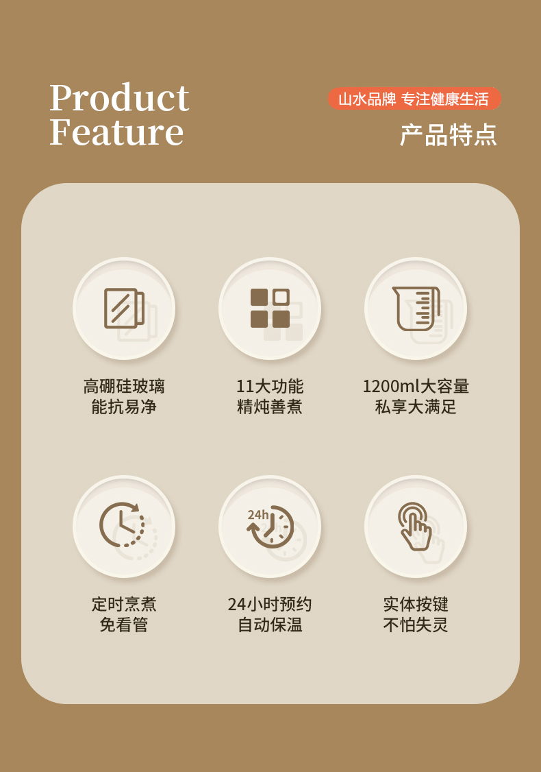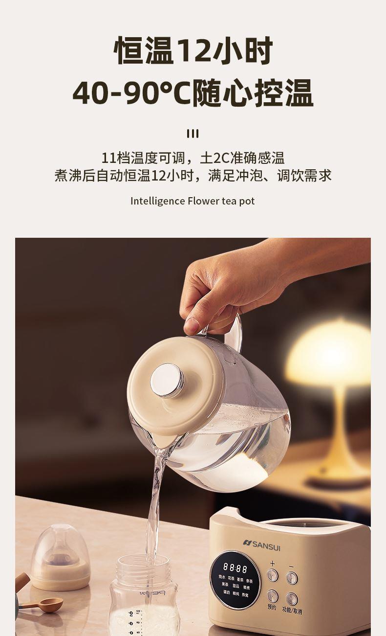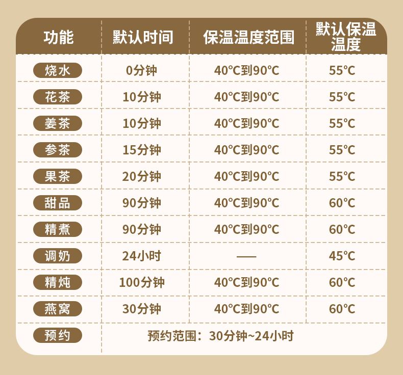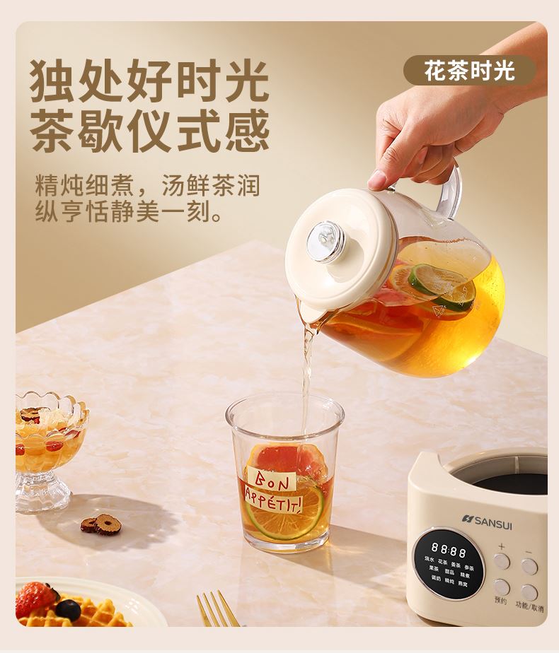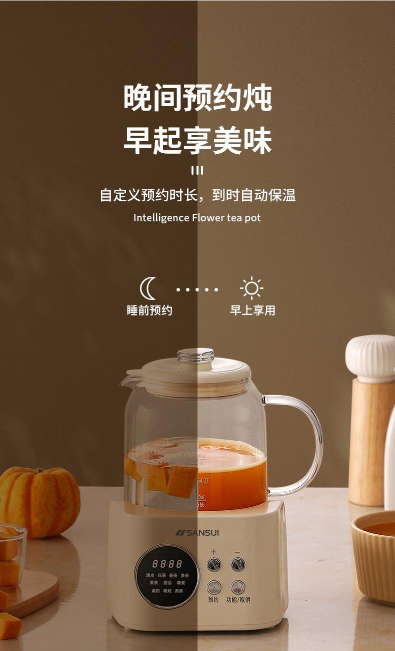 功率:600W 容量:1.2L 全玻璃壶体0涂层0胶水0缝隙 加热无异味、加厚高硼硅玻璃耐骤冷骤热 聚能发热盘均匀加热、304不锈钢茶滤 4位数码显示、四重安全保护 40-90°恒温可调、10大功能菜单 24小时长时恒温、可煮可泡可冷萃、轻音炖煮 1.2L大容量、24小时预约、提壶记忆功能 包装方式:彩盒+网购包装